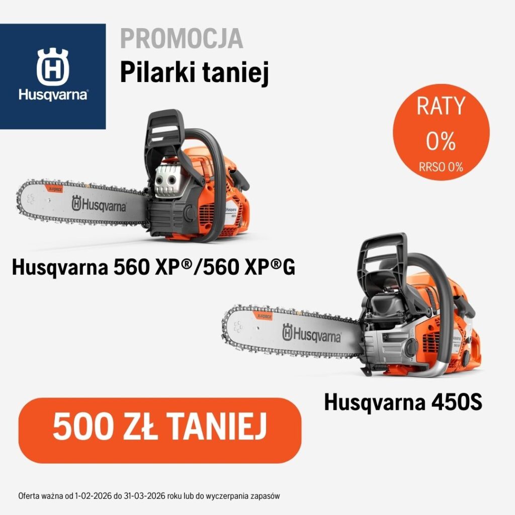 Tylko teraz, pilarka Husqvarna 450S, pilarka 560 XP® oraz 560 XP®G w nowych obniżonych cenach. Oferta ważna od 1-02-2026 do 31-03-2026 roku lub do wyczerpania zapasów.
