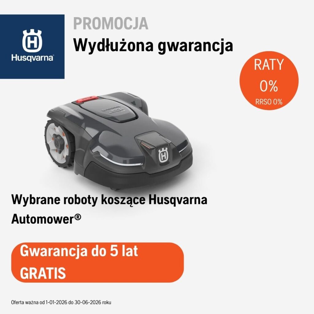 Tylko teraz przy zakupie wybranych robotów koszących Husqvarna Automower® otrzymasz wydłużoną gwarancję do 5 lat – GRATIS! Oferta ważna do 30.06.2026 i dotyczy klientów indywidualnych.