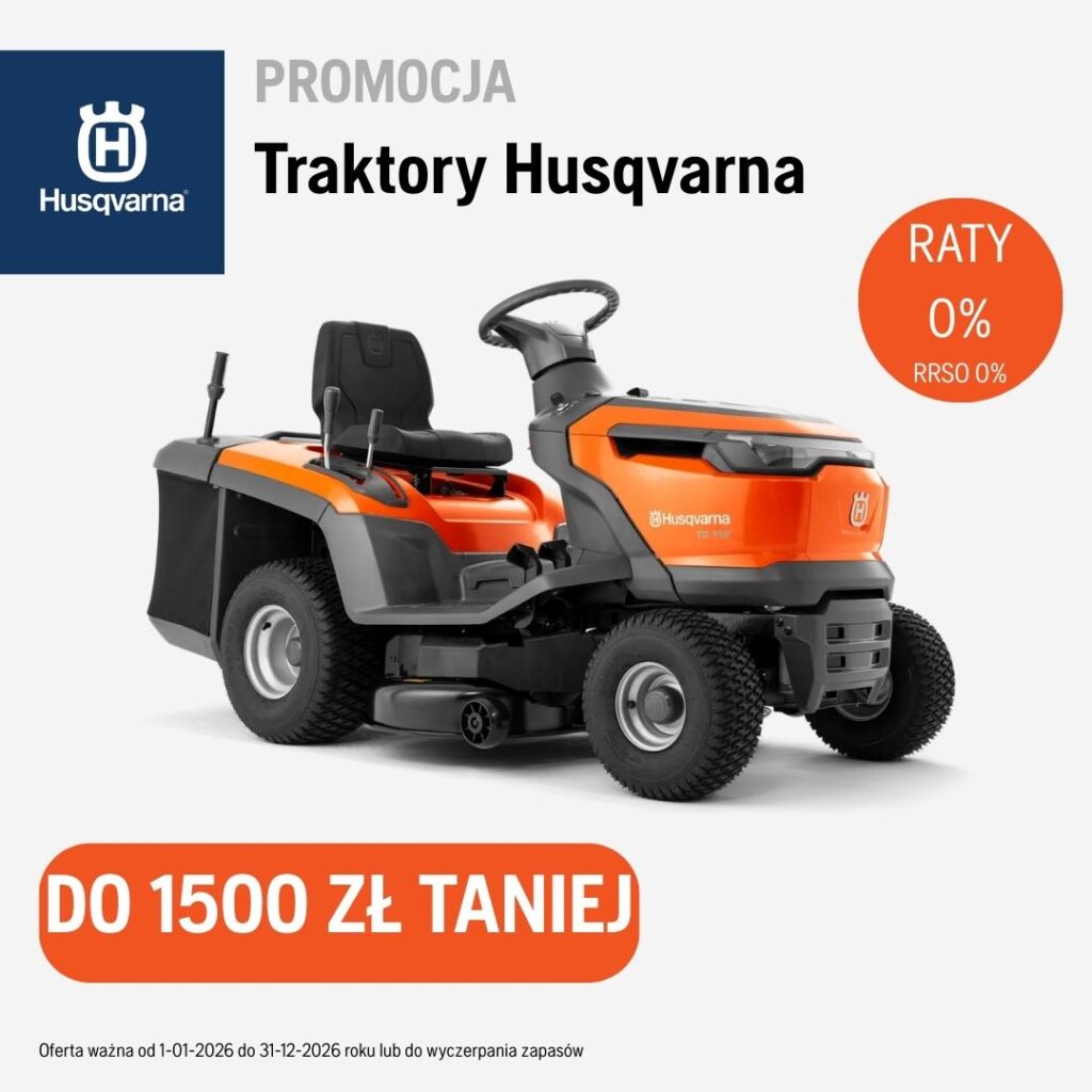 Wybrane traktorki ogrodowe Husqvarna teraz do 1 500 zł taniej. Oferta ważna do 31.12.2026 roku lub wyczerpania zapasów.